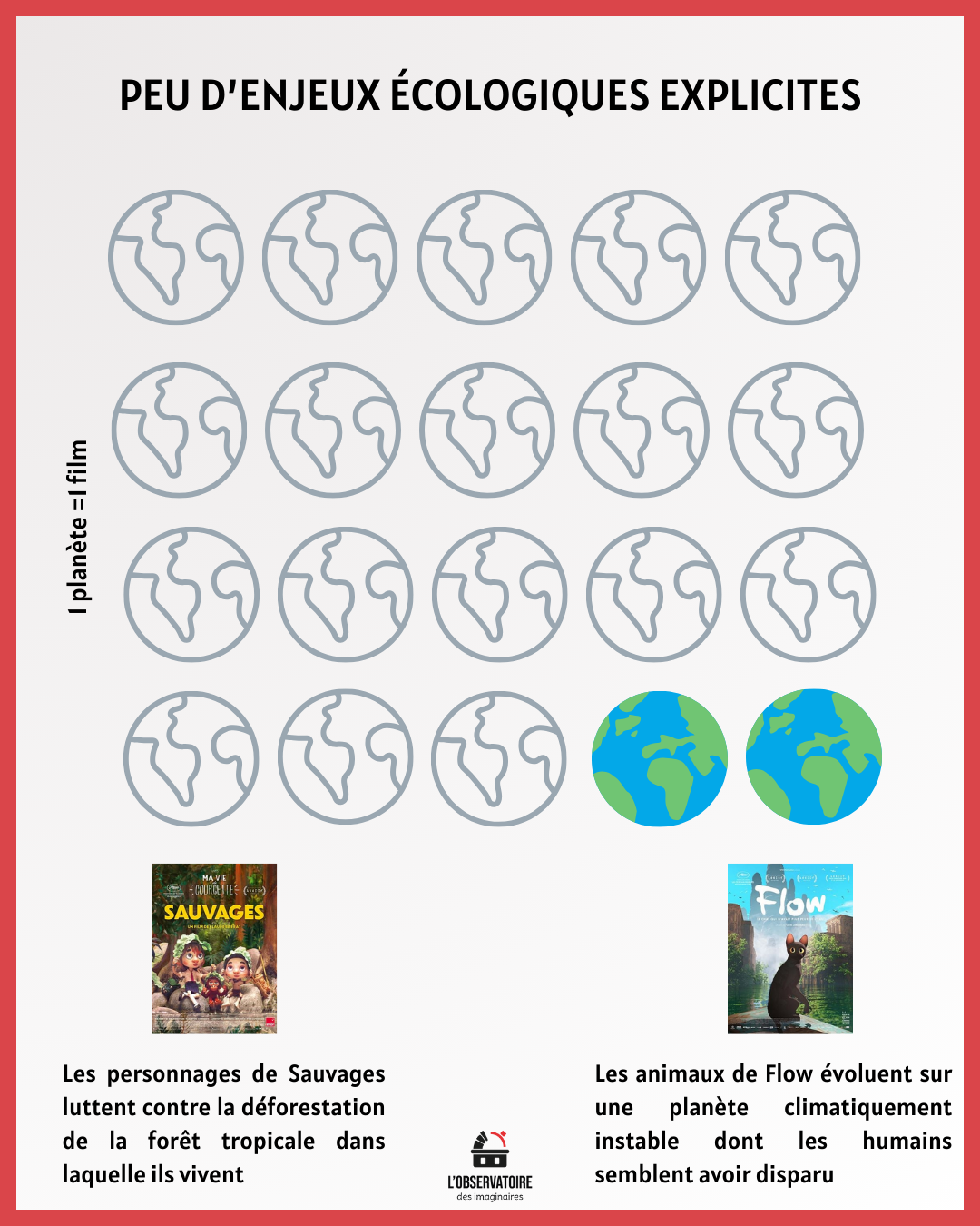 Les enjeux environnementaux sont les grands absents de cette liste des nommés. Seuls Sauvages et Flow évoquent directement le monde naturel et sa destruction.